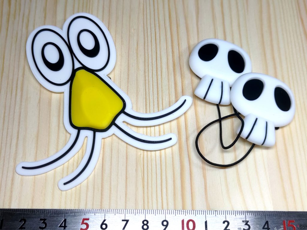 イソベやんバッジとおんたんのドクロの髪留めを3Dプリンタで製作。