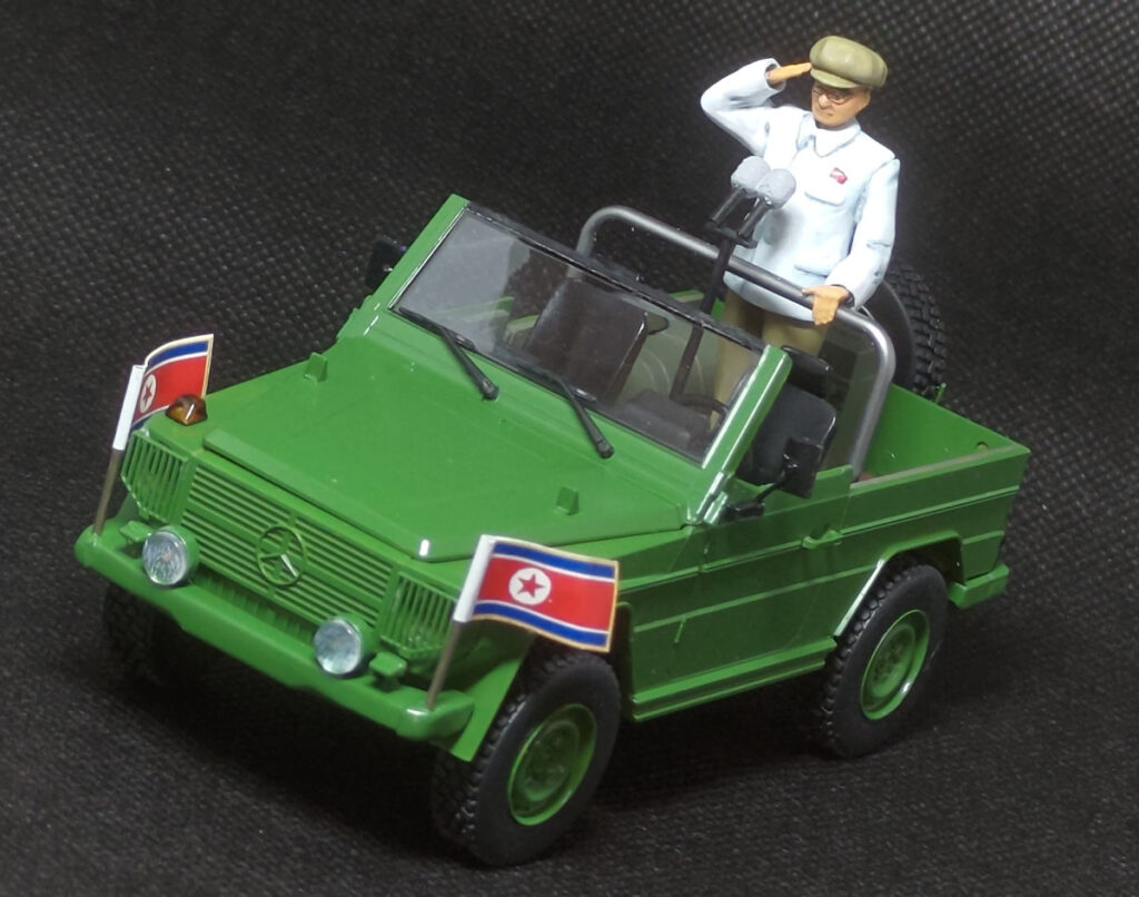 北朝鮮のパレード(朝鮮民主主義人民共和国創建73周年慶祝民間及び安全武力閲兵式)に登場したメルセデス・ベンツ Gクラスをプラモで再現。