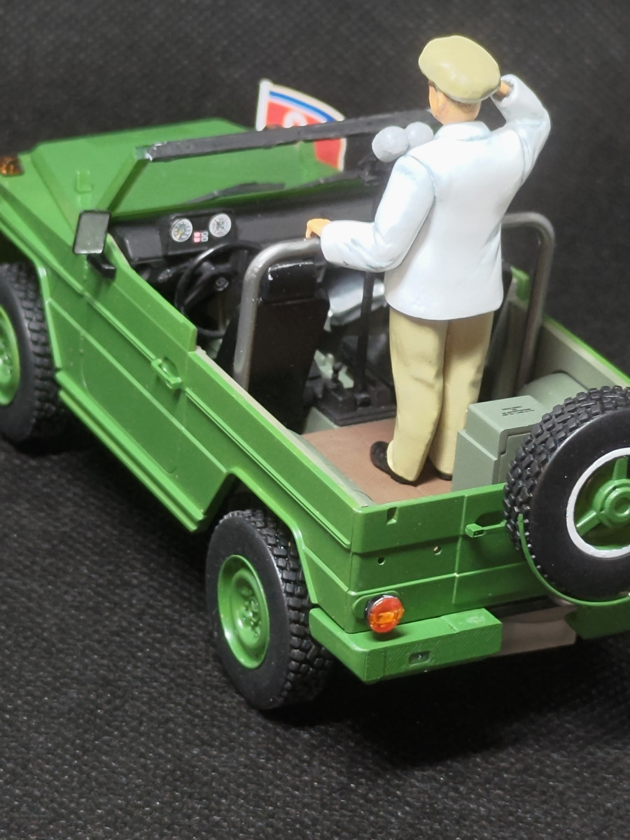 朝鮮民主主義人民共和国創建73周年慶祝民間及び安全武力閲兵式に登場したパレードカーをプラモで再現しました。ベースキットはRevellの1/35軍用G型ベンツ"wolf"。チョ・ヨンウォン同志はICM社スターリンと仲間たちフィギュアのベリヤ同志を改造しましたㅋ pic.twitter.com/7H51h0JPai